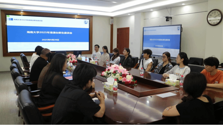 9月28日,在中秋节、国庆节双节来临之际,我校在国际合作交流处104会议室举办2025年港澳台新生座谈会。海南大学岳文副校长、国际教育学院副院长张钊、学生工作部(人民武装部、学生工作处)王萌萌、本科生院许修斌、港澳台办公室高雅和全体2025级港澳台新生参加座谈。会议由国际教育学院副院长张钊主持。