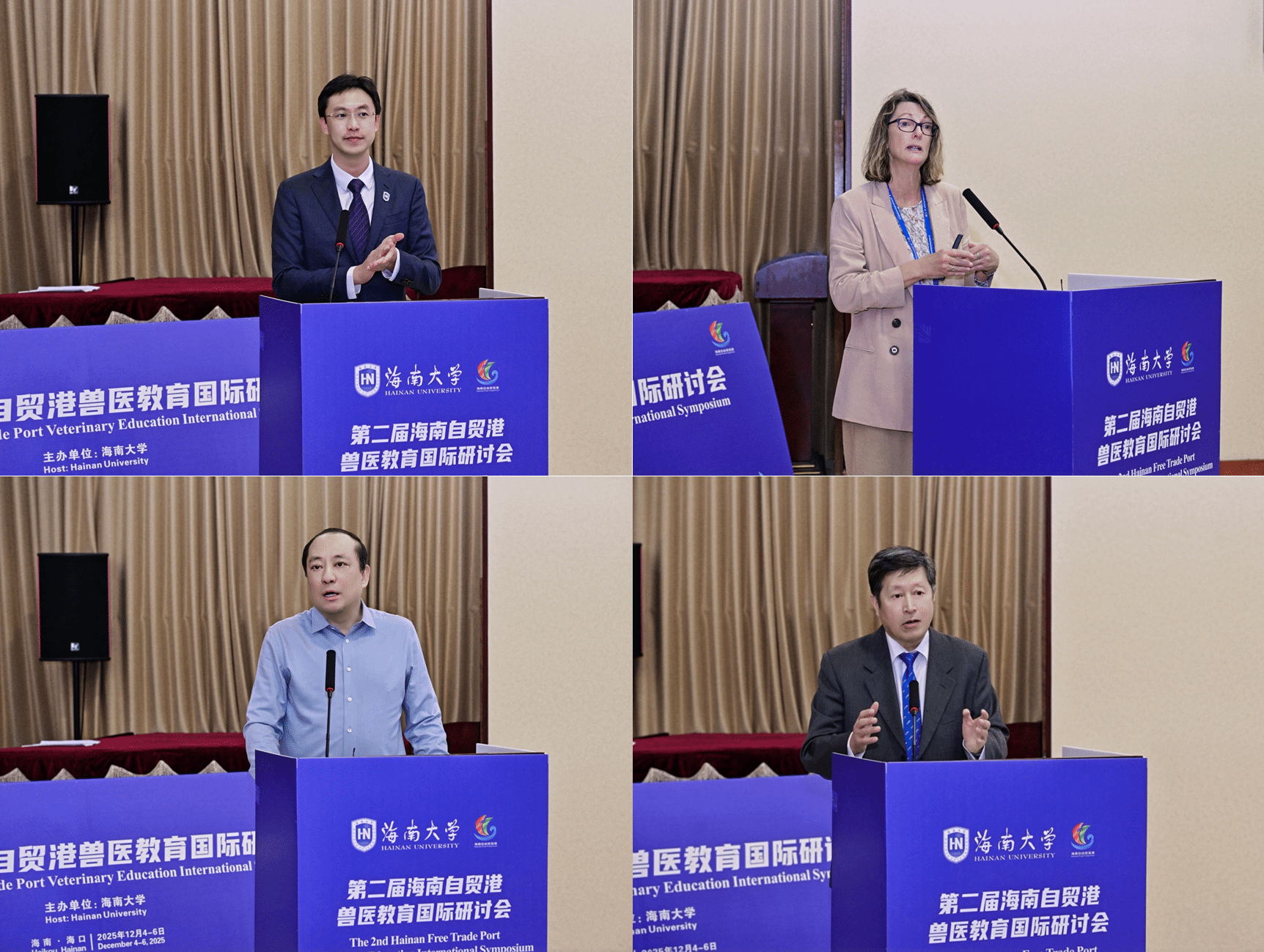 12月5日,第二届海南自贸港兽医教育国际研讨会在海口开幕。教育部兽医专业学位研究生教育指导委员会副主任委员、农业农村部畜牧兽医局原副局长王功民,海南省政协农业和农村委员会主任周燕华,湖南农业大学副校长郑晓峰,海南大学党委常委、副校长岳文,新西兰梅西大学、香港城市大学、泰国农业大学、澳大利亚莫道克大学等境外四所知名兽医院校的专家学者,以及国内相关学科与产业专家、省内行业代表、海南大学师生代表等70余人出席开幕式。