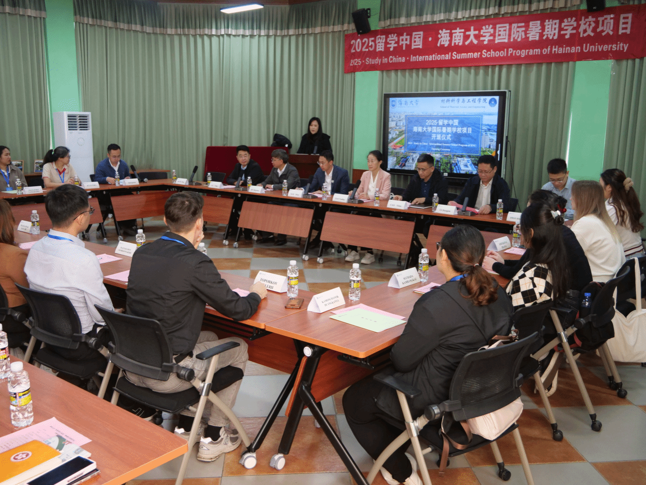 2026 年 1 月 5 日上午,海南大学 “热带材料与琼岛” 国际融合暑期学校项目开班仪式在海甸校区国际学者学生中心举行。学校党委常委、副校长岳文等出席开班仪式并致辞,仪式由材料科学与工程学院副院长王杨主持。