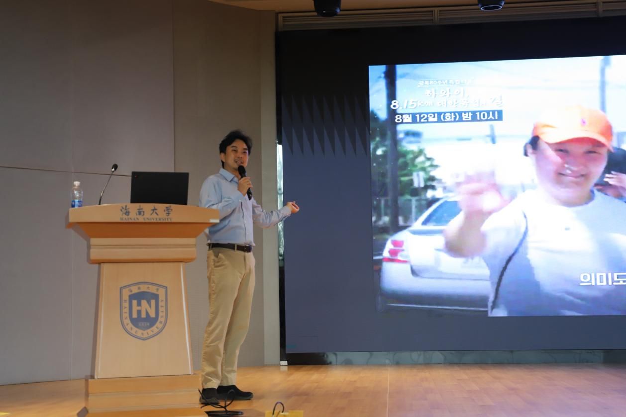 图为 Tae-Joon Jeon 教授为我校师生授课现场