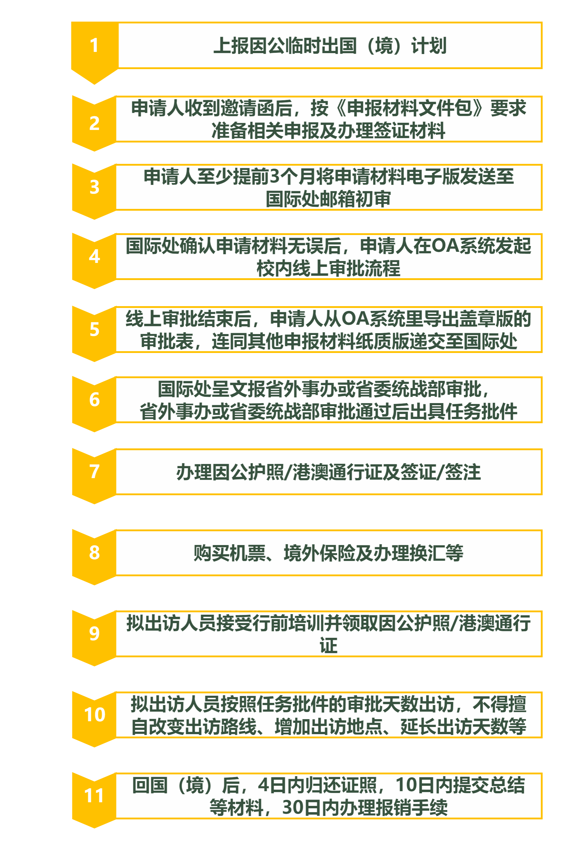 注:外籍及港澳台地区教职工完成校内审批程序后方可持因私证件出访。